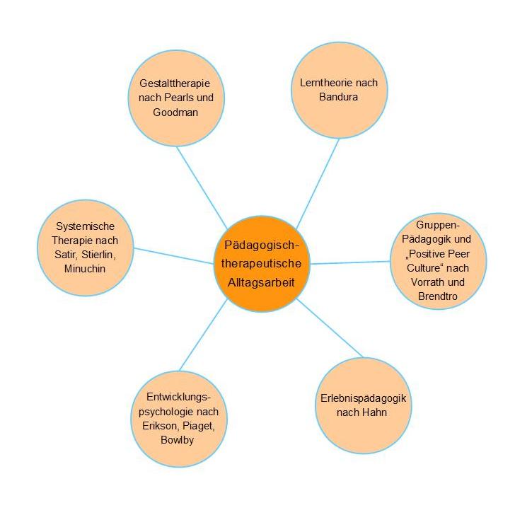 In der alltäglichen pädagogischen Arbeit in unserer Tagesgruppe stützen wir uns auf verschiedene bereits bestehende und erprobte Theorieschulen, Konzepte und Methoden aus den Bereichen Pädagogik, Psychologie und Psychotherapie, um die für unsere Arbeit mit den Kindern relevanten Elemente aus diesen auszuwählen und modifiziert zu übernehmen. Folgende Theorien, Konzepte und Methoden sind dabei wesentlich für unsere Arbeit: